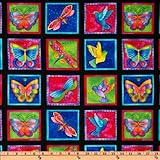 44'' Wide Laurel Burch Flying Colors II Squares Black Fabric By The Yard